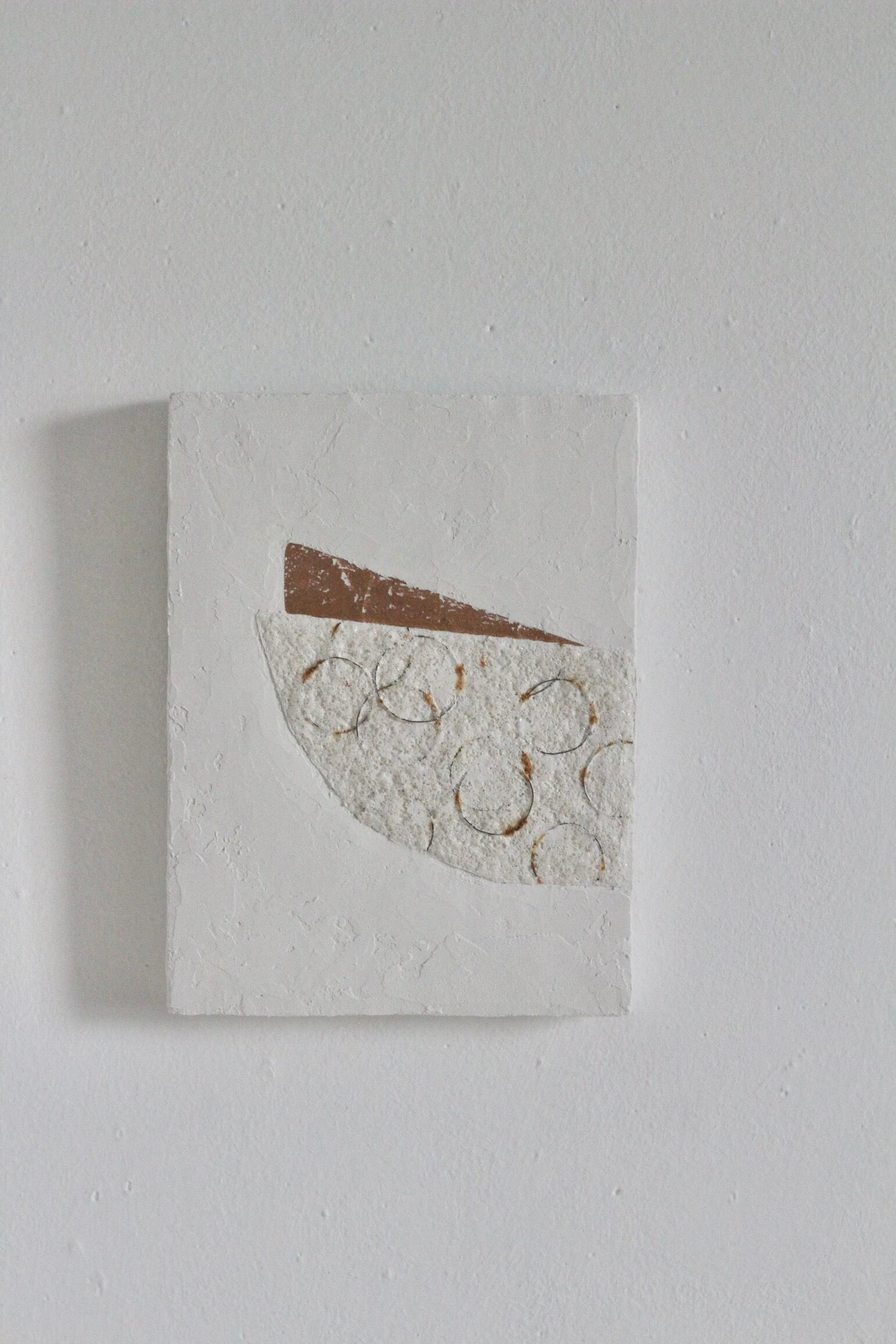 ウッドパネル、漆喰、石粉粘土、針金、アクリルガッシュ