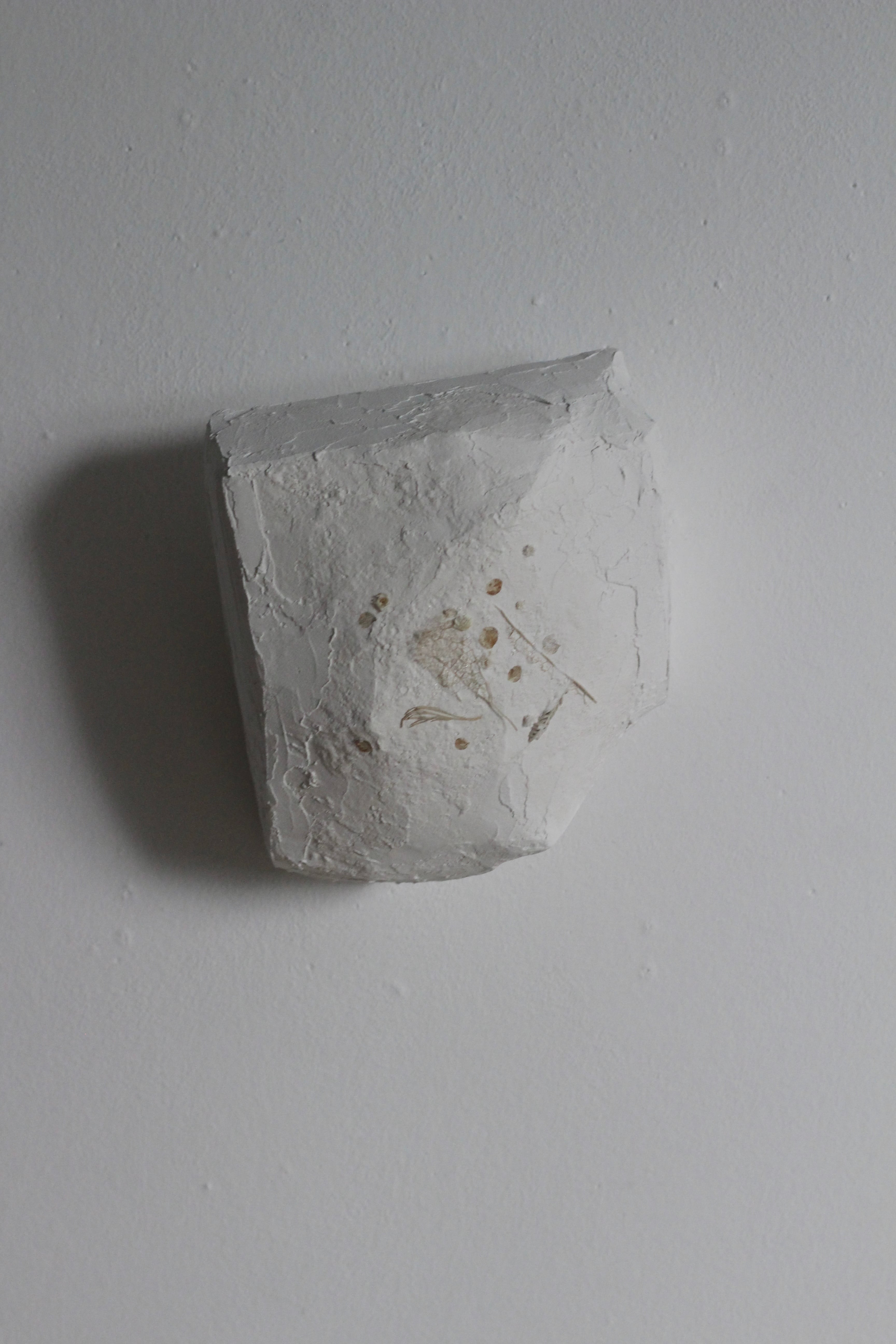 漆喰、石粉粘土、針金、厚紙、アクリルガッシュ、真鍮留め