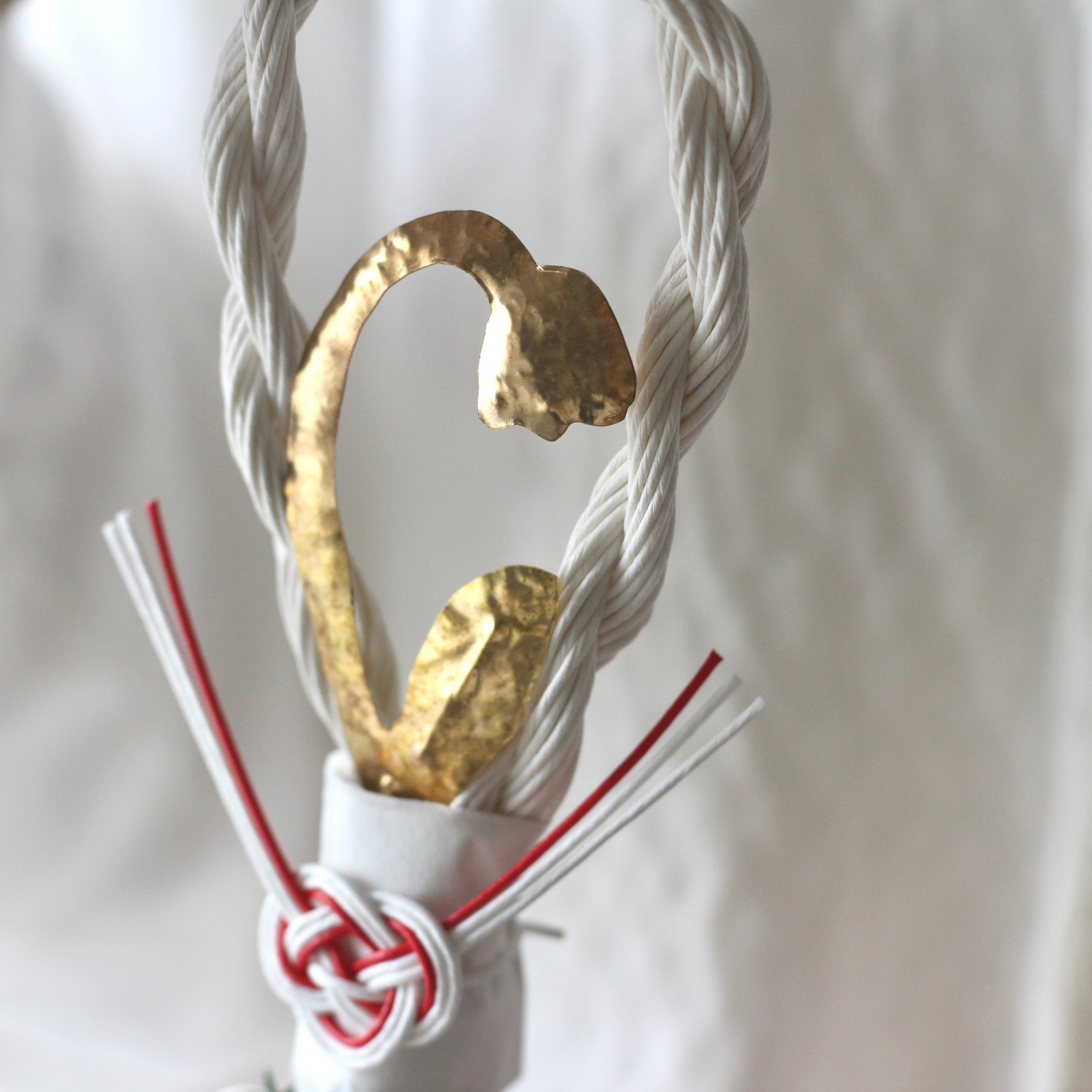 真鍮の飾りはひとつひとつ真鍮板を切り出して作りました。お正月が終わったら取り外して飾ってください◎